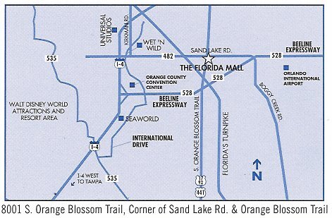 From I4 East: Head westbound to exit 80 (U.S. 441/S.O.B.T.) and follow until you cross Sandlake Road, then take the first left turn.